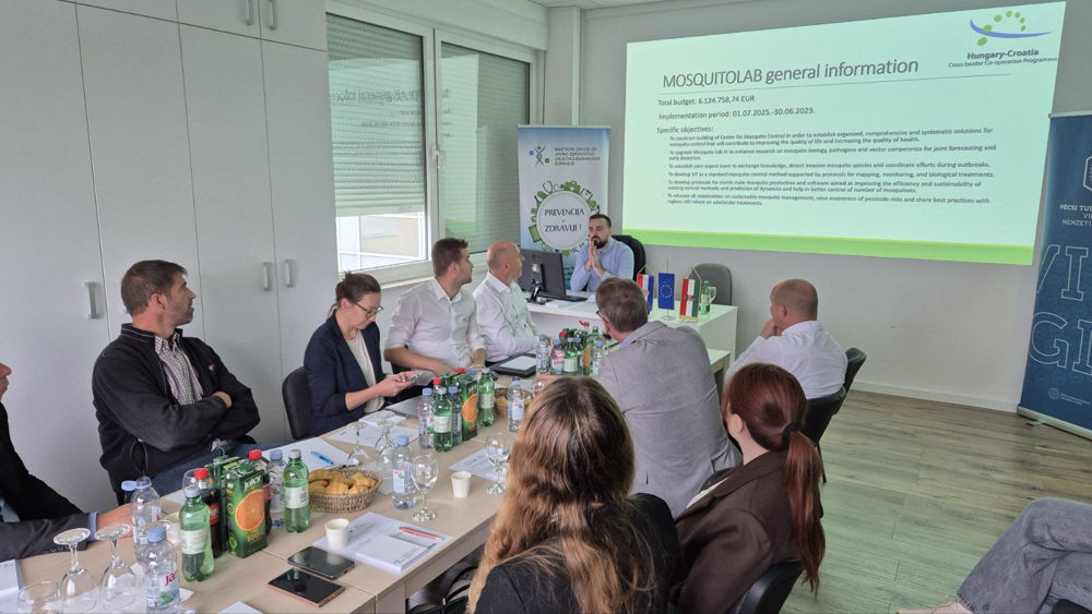 9. listopada je u Osijeku održan prvi sastanak projektnih partnera na projektu MOSQUITOLAB čime je obilježen početak provedbe projekta. Na projektu su sudjelovali članovi projektnog tima ispred Nastavnog zavoda za javno zdravstvo Osječko-baranjske županije, Nacionalnog virološkog laboratorija pri Sveučilištu u Pečuhu te Biokoma d.o.o. -komunalnog poduzeća grada Pečuha koje obavlja i poslove suzbijanja komaraca. Na sastanku su bili prisutni i predstavnici Zajedničkog tajništva programa Interreg Mađarska-Hrvatska te Javne ustanove Županijske razvojne agencije Osječko-baranjske županije.